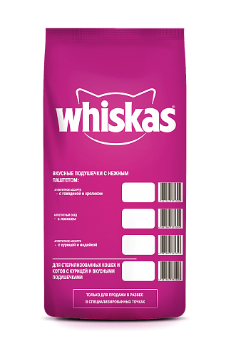 Это сбалансированный рацион для здоровой и счастливой жизни Вашей кошки. Хрустящие подушечки с нежным паштетом внутри обязательно придутся по вкусу Вашей любимице. Кроме того, корм Whiskas® содержит все необходимое, чтобы еда Вашей кошки была не только вкусной, но и полезной.