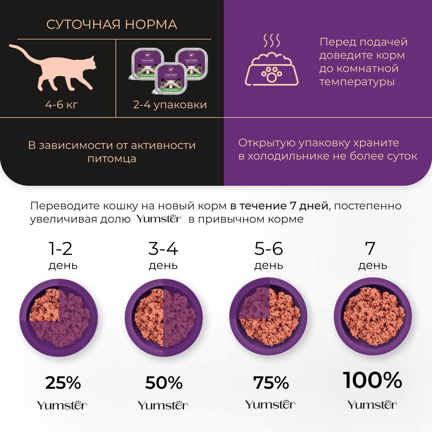Каждая кошка - яркая индивидуальность. Подарите ей наслаждение с разнообразием вкусов Yumster. Ямстер - богатство выбора и натуральная польза для Вашего питомца!