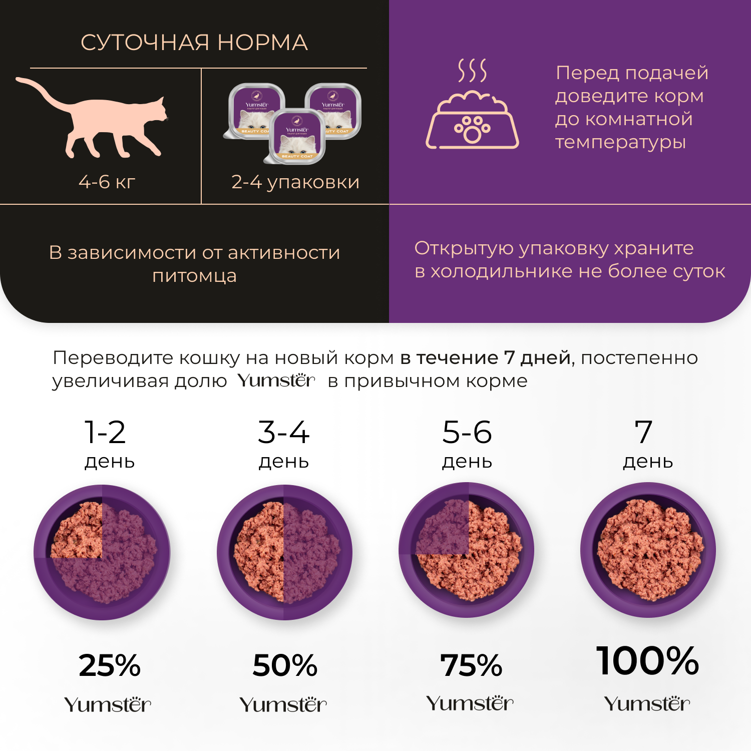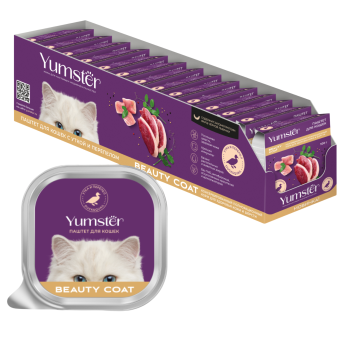 Каждая кошка - яркая индивидуальность. Подарите ей наслаждение с разнообразием вкусов Yumster. Ямстер - богатство выбора и натуральная польза для Вашего питомца!