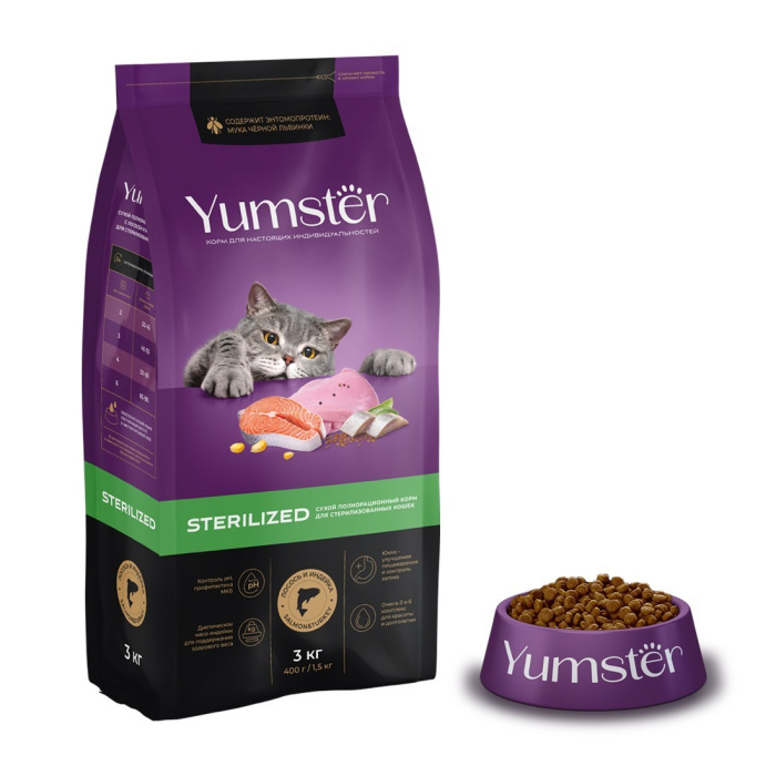 Корм Yumster для взрослых кошек с лососем и индейкой содержит полный набор веществ, необходимых стерилизованным кошкам и кастрированным котам. Прежде всего, это нежный лосось и диетическая индейка, помогающие контролировать вес, а также полезные злаки и другие натуральные компоненты для здорового пищеварения. Корм богат природными пищевыми волокнами для укрепления иммунитета животного. Сбалансированный витаминно-минеральный состав в сочетании с высокой вкусовой привлекательностью – для красоты, здоровья и гастрономического удовольствия Вашего питомца.