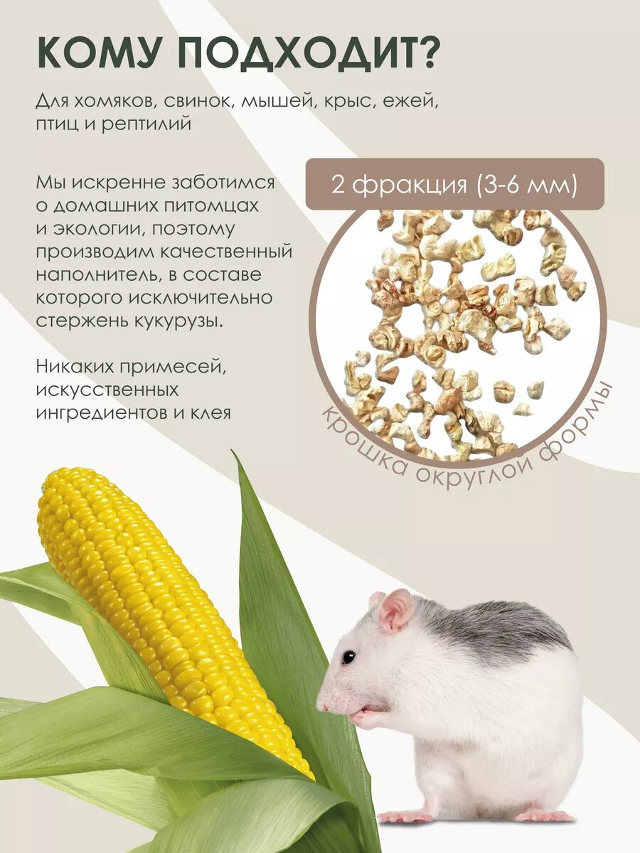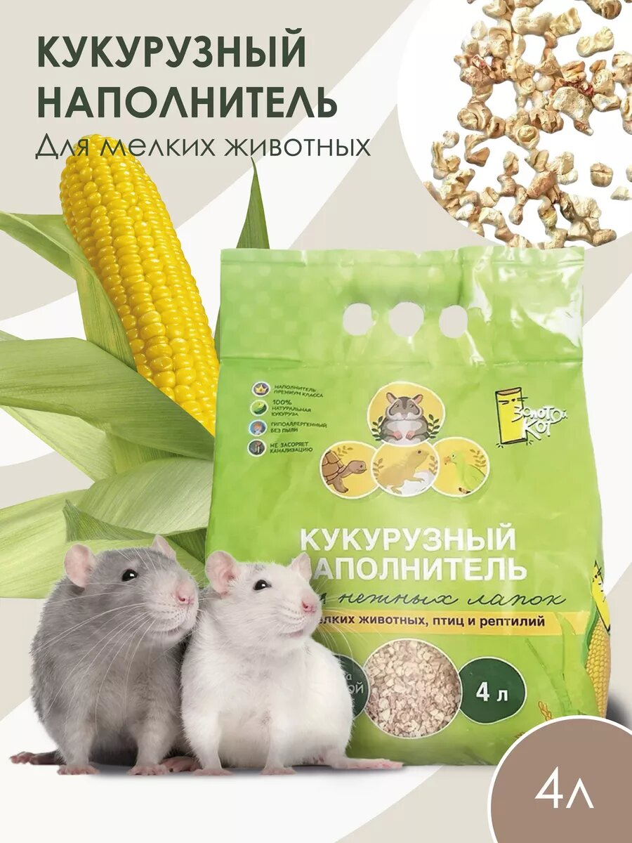 Кукурузный наполнитель "Для нежных лапок" - идеальное решение для создания комфортной и безопасной среды для ваших питомцев. Объем упаковки составляет 4 литра, что позволяет обеспечить нужное количество наполнителя для туалета грызунов и рептилий. Наполнитель изготовлен из натурального кукурузного сырья, что делает его гипоаллергенным и безопасным для животных с чувствительной кожей.