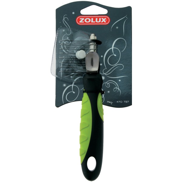 ZOLUX - колтунорез для кошек и собак с длинной шерстью. Предназначен для бережного разрезания спутанных прядей и колтунов. Лезвия колтунореза сделаны из нержавеющей стали, что исключает возможность попадания вредных окислов металлов на шерсть и кожу животного. Удобная пластиковая ручка с противоскользящими ребрами сделает процесс грумминга еще более простым и удобным.