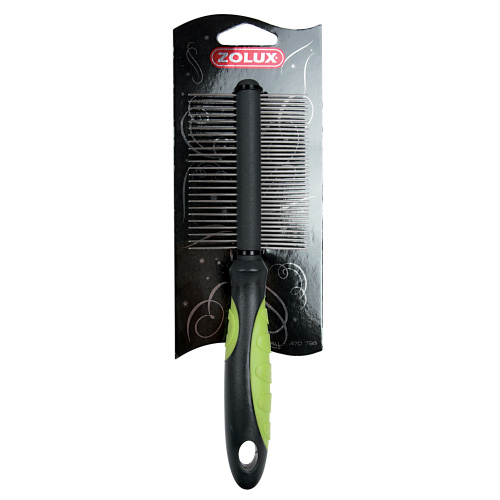 Частые зубья предназначены для расчесывания нежной шелковистой шерсти, редкие зубья - густой и жесткой.