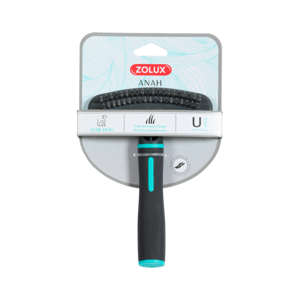 Расческа-грабли для ухода за средней и длинной шерстью. Вращающиеся зубцы сделаны округлой формы для предотвращения спутывания шерсти. Двойной ряд с 20-ю и 19-ю зубьями облегчит уход за длинной шерстью при любом типе волоса и густоте.