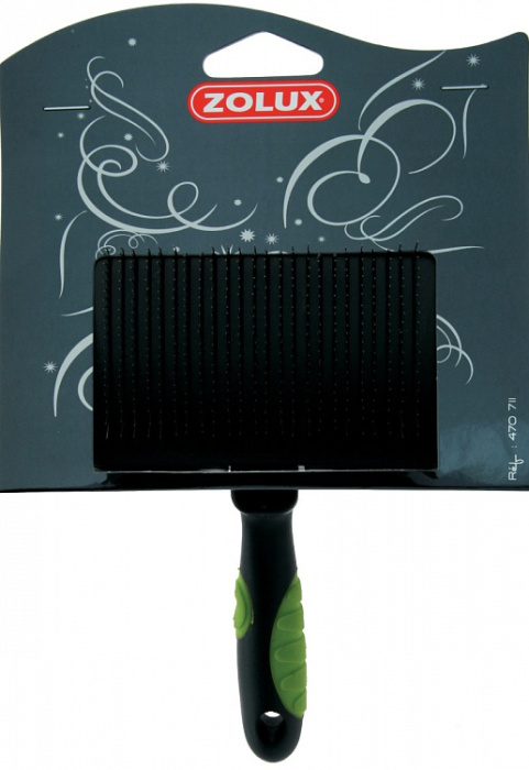 ZOLUX - большая массажная щетка-расческа с подвижным кордом и автоматической чисткой для собак. Удобная нескользящая ручка облегчает и делает более приятным процесс грумминга.