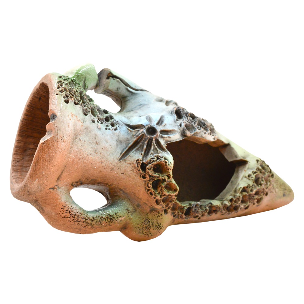 Грот изготовлен из экологически чистых природных глин, что делает его нетоксичным и абсолютно безопасным для обитателей аквариума. Он создаётся вручную и проходит процедуру двойного обжига. В результате длительного воздействия высоких температур на поверхности грота образуются поры, которые, находясь в воде, заселяются полезной микрофлорой, поддерживающей естественный баланс в аквариуме.
