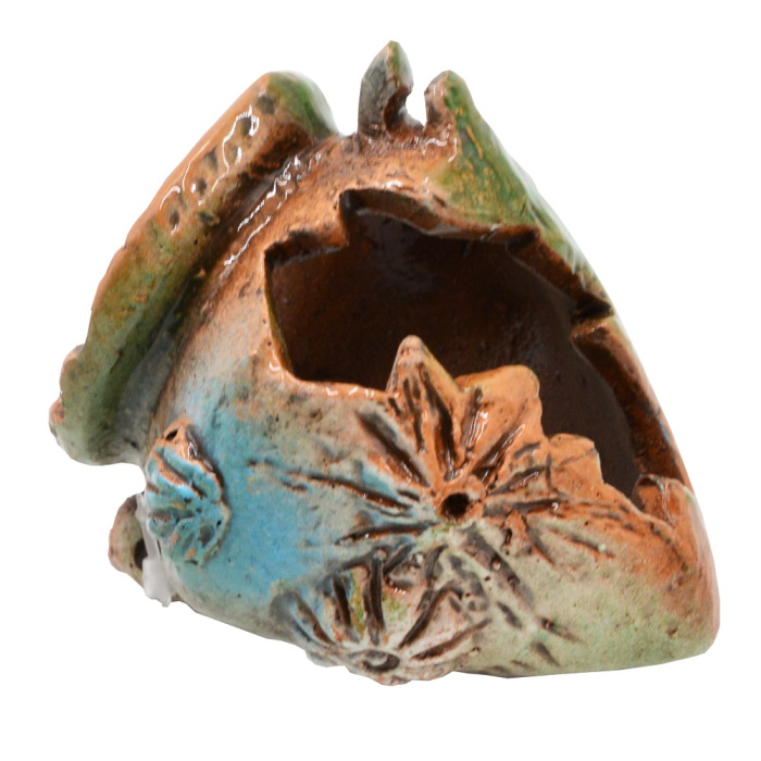 Грот изготовлен из экологически чистых природных глин, что делает его нетоксичным и абсолютно безопасным для обитателей аквариума. Он создаётся вручную и проходит процедуру двойного обжига. В результате длительного воздействия высоких температур на поверхности грота образуются поры, которые, находясь в воде, заселяются полезной микрофлорой, поддерживающей естественный баланс в аквариуме.