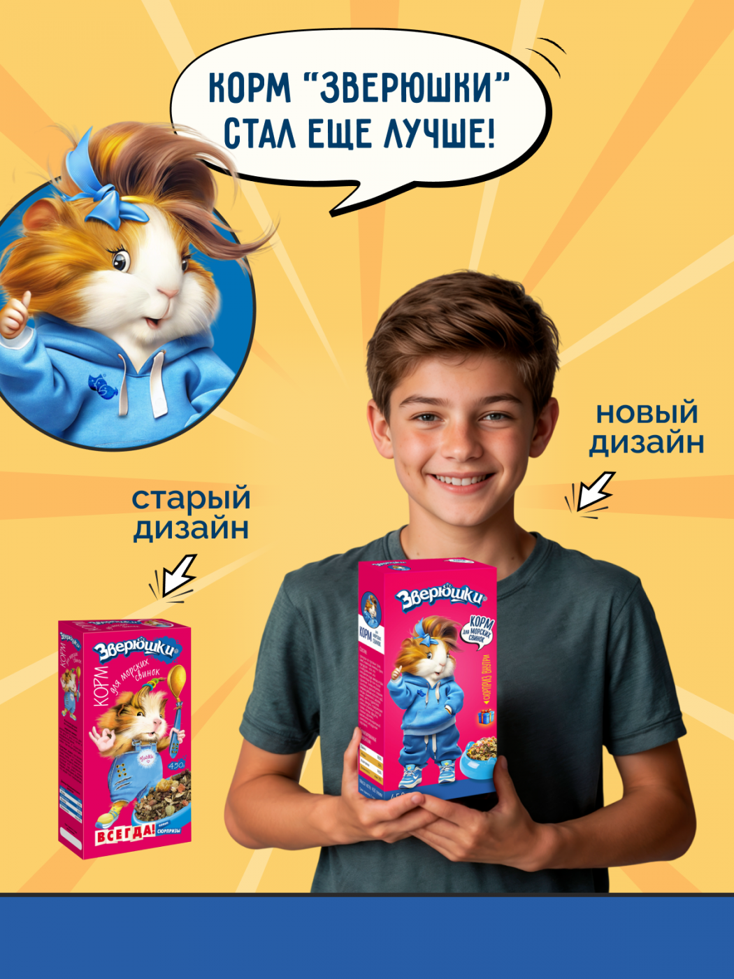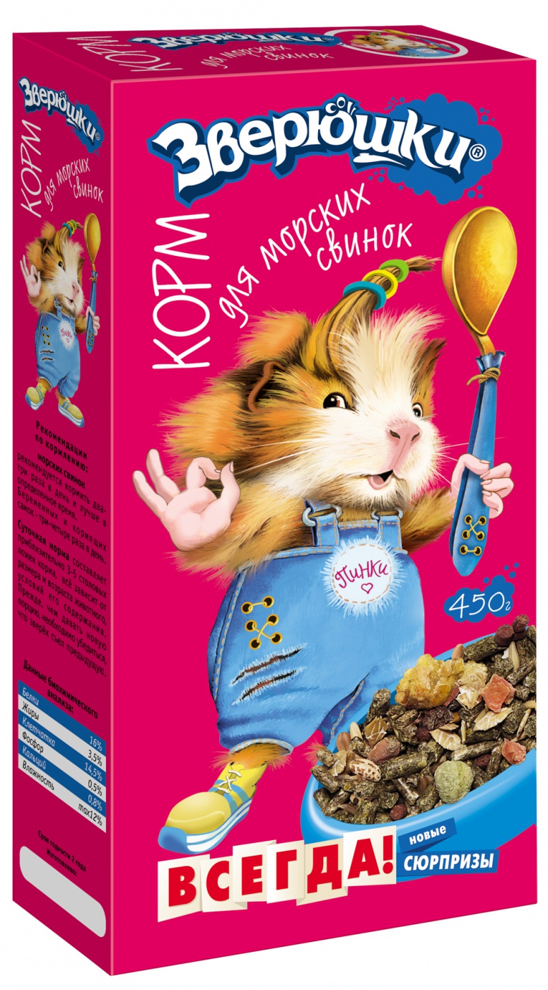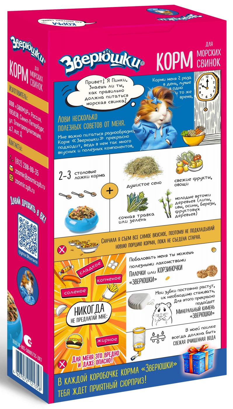 Комплексный полнорационный корм Зверюшки оптимально учитывает физиологические потребности и предпочтения морских свинок. В его состав входят гранулы из луговых трав, семена злаков, сухие овощи, корнеплоды, минеральные вещества и витамины. Герметичная полипропиленовая упаковка гарантирует свежесть и защиту от насекомых-вредителей. Этот корм будет по достоинству оценен вашими питомцами, он обеспечит им здоровую, активную и счастливую жизнь.