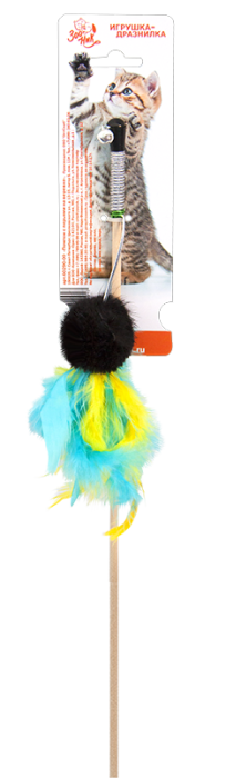 Дразнилка для кошек "Помпон с перьями на веревке" 50см