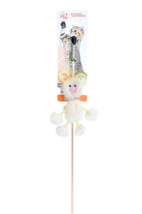 Яркая и функциональная удочка-дразнилка с деревянной ручкой.