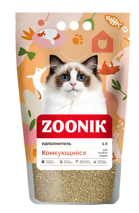 —Зооник наполнитель комкующийся для кошек, 5 л
