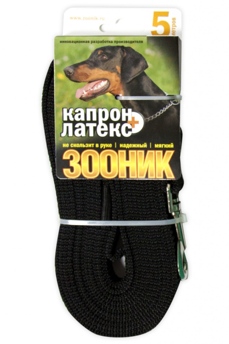 Поводок для собак "Зооник" капроновый с латексной нитью. Инновационная разработка Российского производителя. Удобный в использовании: надежный, мягкий, не скользит в руке. Иде ально подходит для прогулок и дрессировки собак.