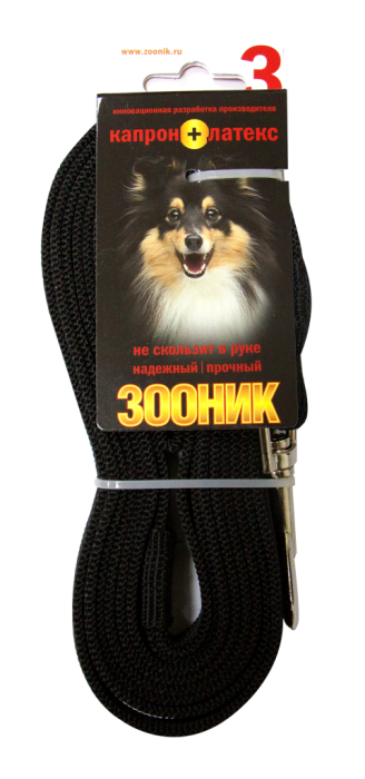 Зооник Поводок капроновый с латексной нитью 3 м.* 15 мм, Черный