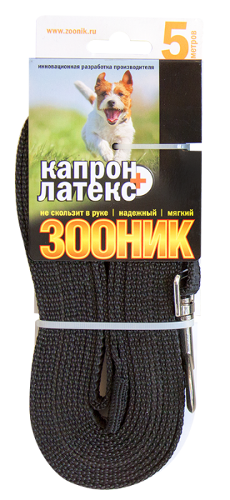 Поводок для собак "Зооник" капроновый с латексной нитью. Инновационная разработка Российского производителя. Удобный в использовании: надежный, мягкий, не скользит в руке. Иде ально подходит для прогулок и дрессировки собак.