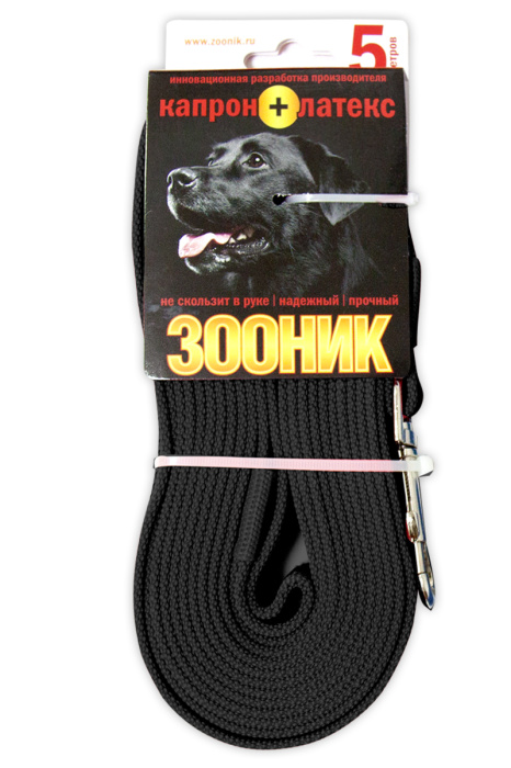 —Зооник Поводок капроновый с латексной нитью 5м*20 мм, Черный