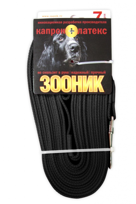 —Зооник Поводок капроновый с латексной нитью 7м*25 мм, Черный