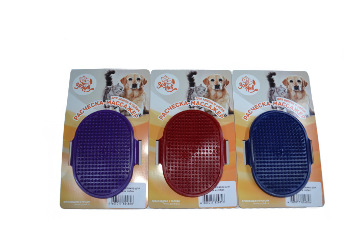 Массажная щетка для животных "Зооник" подходит для короткошерстных собак и кошек, а также для кроликов, хорьков, не царапает кожу, стимулирует приток крови и удаляет мертвые волосы. Щетка одевается на кисть.