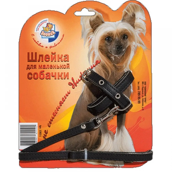 Шлейка кожа для маленьких собачек на блистере (+поводок 1,5 м), 12мм