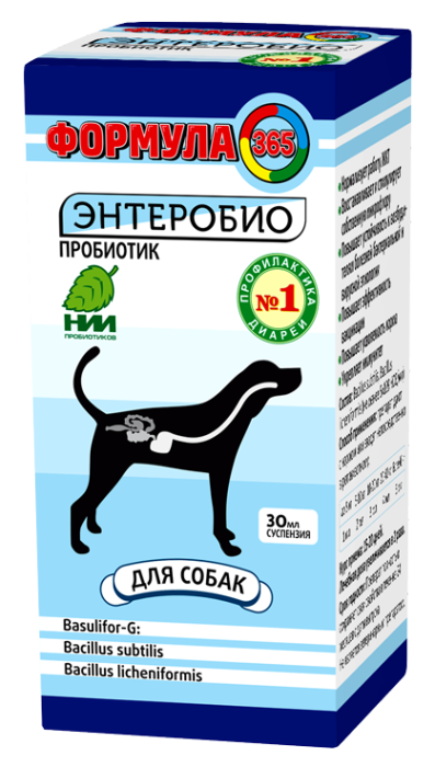 Научно-исследовательский институт пробиотиков - один из ведущих разработчиков и производителей пробиотиков и пробиотических продуктов в России представляет новинку - пробиотик "ФОРМУЛА 365»- ЭНТЕРОБИО для собак.