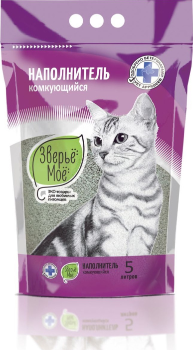 Комкующийся наполнитель Зверьё моё состоит из бентонита - природного глинистого минерала, обладающего большой гигроскопичностью, то есть способностью впитывать влагу. Лоточек с мелкими и мягкими кусочками камушков идеально соответствует представлениям кошки о том, в каком месте устроиться для выполнения важных дел. Наполнитель быстро впитывает жидкость и тут же слипается, образуя комочек, который легко убрать из лоточка вместе с твердыми отходами. Таким образом исключается необходимость часто менять весь лоток - достаточно регулярно удалять отработавший наполнитель и подсыпать новый. Такой вариант отлично подходит для семьи с одной кошкой, но посещение лоточка несколькими кошками может помешать образованию твердого комочка наполнителя.