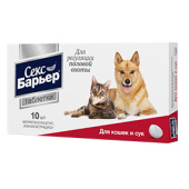 Бигормональное контрацептивное средство в форме таблеток для угнетения полового возбуждения, агрессивного состояния, коррекции поведения кошек и сук, создания оптимальных условия для работы служебных и охотничьих собак.Периодически возникающее у домашних животных состояние половой охоты, возрастающая агрессивность и понижение управляемости животных может стать серьезным препятствием для работы со служебными и охотничьими собаками, может помешать участию в престижном конкурсе, что не мало важно для заводчика, планомерно занимающегося выставочной карьерой. Не запланированное появление на свет щенков и котят ведет к возникновению морально-этической проблемы со стороны хозяев. По сравнению с существующей практикой кастрации и стерилизации животных, в настоящее время существуют достаточно широкие знания о возможностях современной гормональной контрацепции, благодаря которым данные проблемы можно легко решить.Применение: препарат дают кошкам и сукам с кормом или принудительно на корень языка. Дозировка зависит о