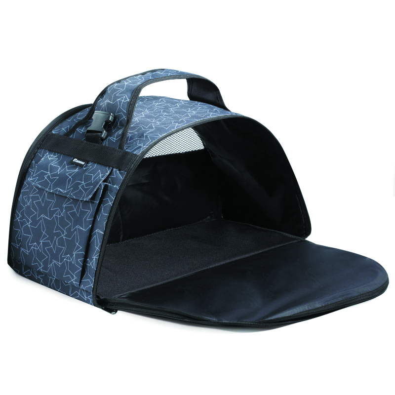 Легкая, вместительная и эргономичная сумка-переноска для домашних животных. Изделие компактно складывается до размера косметички, за счет чего - очень удобно в хранении. При этом пластиковый каркас обеспечивает сохранность формы сумки-переноски в собранном виде. Изделие имеет два кармана с клапаном и укомплектовано удобным наплечным ремнем. Дополнительная опция сумки-переноски - откидывание боковых сторон. Размеры сумки 440*230*250мм.