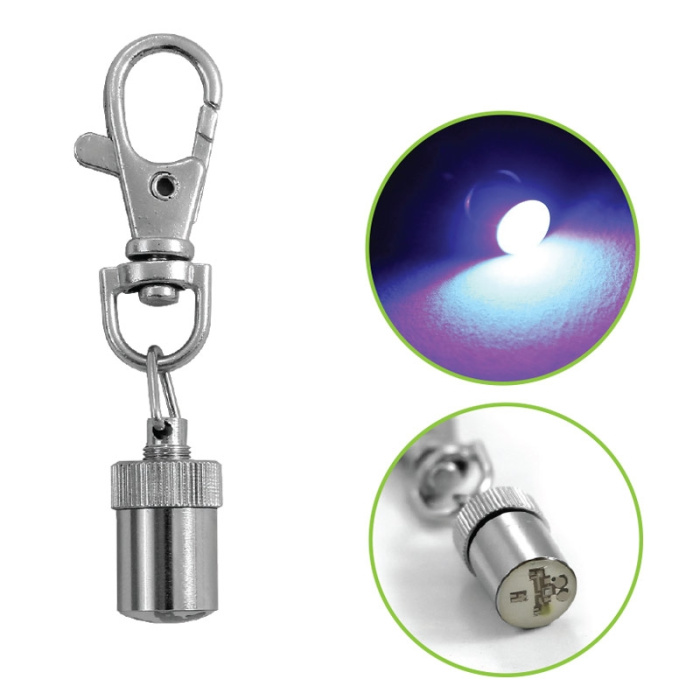 Светодиодный металлический брелок послужит индикатором вашего животного в темное время суток. Видимость в темноте в пределах 500м. До 200ч работы. Разноцветное яркое свечение в одном режиме. Воможность замены батарейки. Размер: 60*11мм.