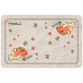 Коврик под миску с ярким принтом - незаменимый аксессуар в доме с четвероногим любимцем. Он защищает пол от загрязнений и облегчает уборку после кормления животного, а также сам легко моется и чистится. Благодаря специальной подложке коврик не скользит, поэтому идеально подходит для мисок, не имеющих антискользящих резиновых вставок на дне. А оптимальные габариты позволяют удобно разместить на нем сразу все миски и поилки питомца. Размер изделия: 430х280мм.