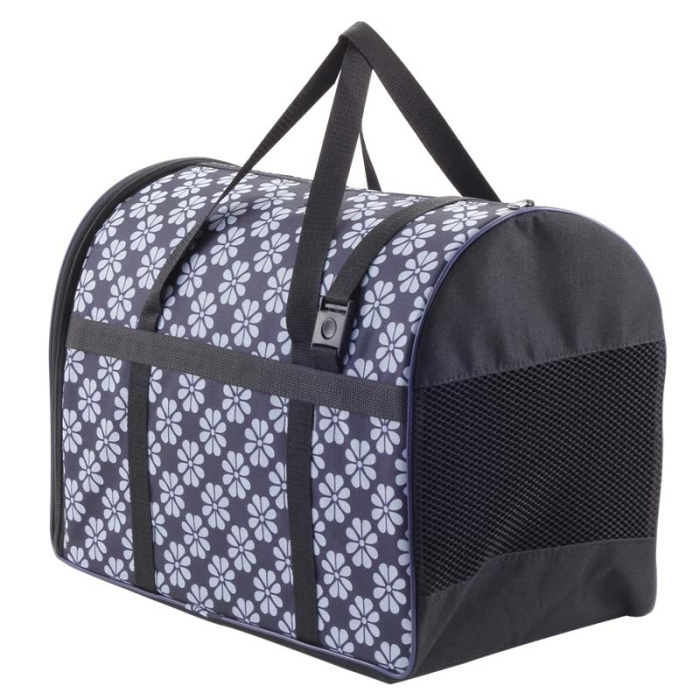 Текстильная сумка-переноска для собак мелких пород и кошек имеет твердое основание, которое не позволит животному провисать. С одной стороны переноски специальная вставка из сетки, чтобы ваш любимец мог дышать. С другой стороны замок-"молния". Также в сумке есть специальная вставка для уплотнения, которая держит ее форму. Для извлечения вставки наверху есть специальный замок-"молния". Для удобной переноски у сумки имеются две ручки и съемная лямка. Изделие представлено в 12 различных расцветках. Размер сумки 420*260*300мм.