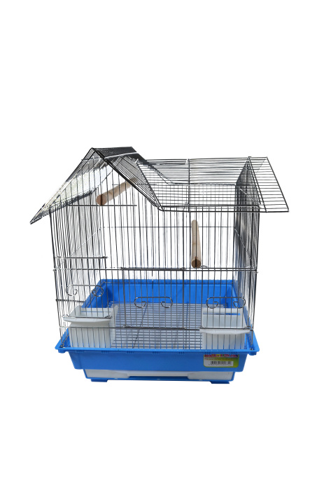 Удобная клетка для птиц с поддонном и всеми необходимыми аксессуарами.