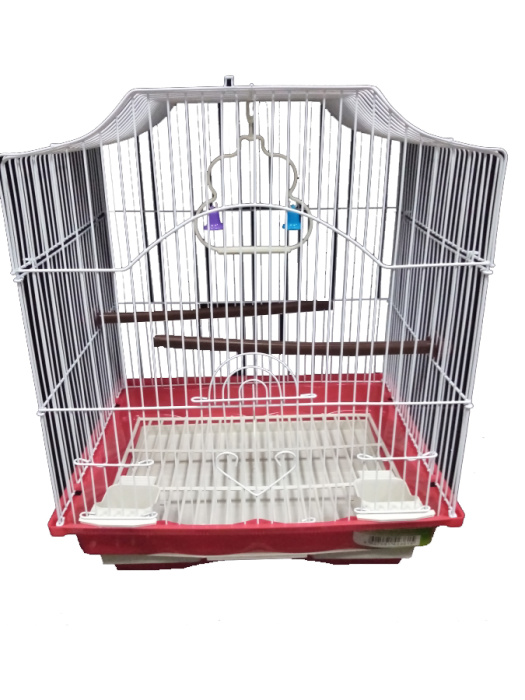 Клетка для мелких и средних попугаев. В комплект клетки входит: 2 пластиковые кормушки, 2 пластиковые жердочки, качели.