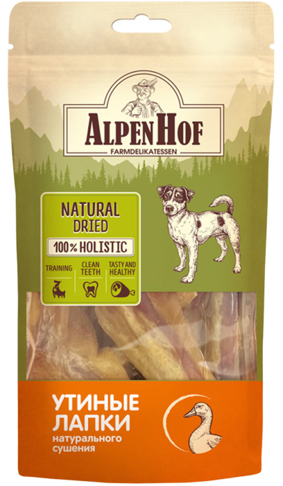 AlpenHof Утиные лапки: 100% натуральный продукт, высушенный естественным путем, первоначальный вкус от природы, без использования химических веществ и соли. Мы рады предложить вашему питомцу продукт высочайшего класса!