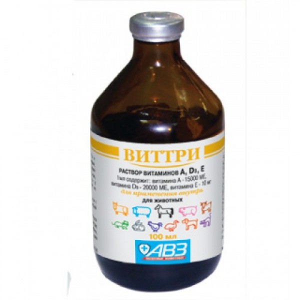 «Виттри» содержит витамины А, D3, Е в физиологически обоснованных соотношениях. Препарат нормализует обмен веществ, предупреждает гиповитаминозы, а также заболевания, развивающиеся на их фоне. Выпускается «Виттри» по трем рецептурам, отличающимся содержанием витаминов: