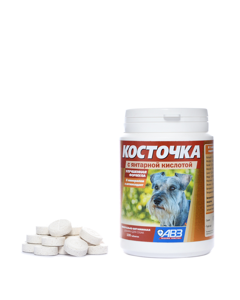 1 таблетка (2 г) содержит:витамин D3 – 60 МЕ;янтарная кислота -0,02 г;мука костная или мясо-костная -1,31 г;вспомогательные вещества: лактоза, кальция стеарат.- See more at: http://vetzoopla.net/kostochka-100t-yantarnaya-k-ta/#sthash.d42bEQXI.dpuf