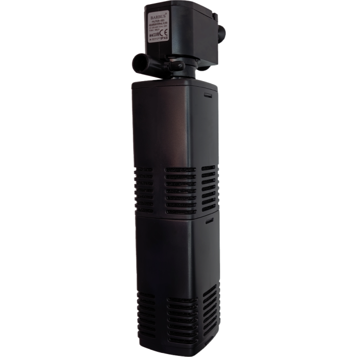 Внутренний фильтр для аквариума с аэрацией и регулятором потока BARBUS. Мощность — 20W, объем аквариума до 100л, производительность — 880л/ч.