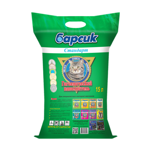 Гигиенический наполнитель Барсик «Стандарт» – экологически чистый высококачественный впитывающий наполнитель для кошачьего туалета, изготовлен из природного минерала – опоковидной глины, прошедшей специальную технологическую обработку.