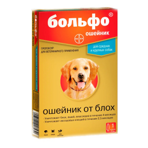 Ошейник Больфо предназначен для уничтожения блох, вшей, власоедов и иксодовых клещей, паразитирующих на собаках и кошках, а также для защиты животных от их нападения.