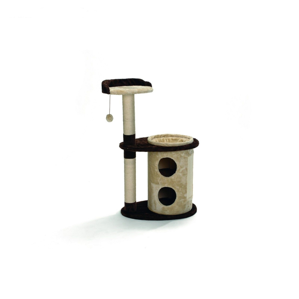 Размер: 63 х 43 х 105 см Двухуровневая когтеточка позволяет кошке почувствовать свободу передвижения. Туннель нора позволит кошке укрыться от посторонних глаз. Обита плюшем. Когтеточка изготовлена из сизаля, натурального прочного материала.
