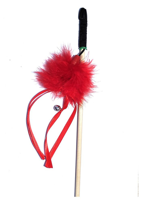 Материал: пух, атласные ленты, бубенчик, деревянная палочка.