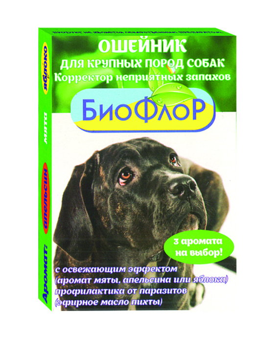 "Биофлор" ошейник с освежающим эффектом устраняет неприятные запахи, когда все способы борьбы с ними уже испробованы.