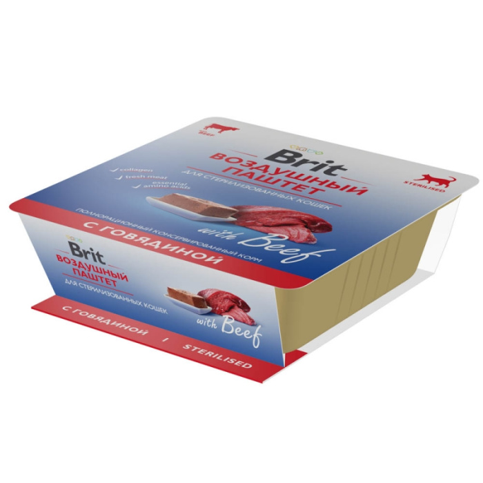 Мясо и мясные субпродукты не менее 80 % (в том числе говядина), таурин, витамины и минералы, экстракт Юкки Шидигера, цикорий. Пищевая ценность на 100 г (средние значения): сырой протеин 10,0 г, сырой жир 4,0 г, сырая зола 1,0 г, сырая клетчатка 0,2 г, влага 80 %. Питательные добавки на 100 г (средние значения): витамин А 180 МЕ, витамин D3 18 МЕ, витамин Е 1 МЕ.