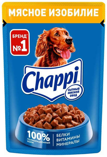 Корм для собак CHAPPI - это вкусный мясной обед, который обязательно понравится Вашей собаке. Он оптимально сбалансирован и содержит все необходимое для того, чтобы поддерживать здоровье и хорошее самочувствие Вашего любимца. В Chappi оптимально сбалансированы все необходимые для собаки вещества: белки - для развития мышечной системы, полиненасыщенные жирные кислоты - для здоровой кожи и блестящей шерсти, антиоксиданты - для укрепления иммунитета, клетчатка - для здорового пищеварения. Влажный корм лучшее решение для вашего питомца.