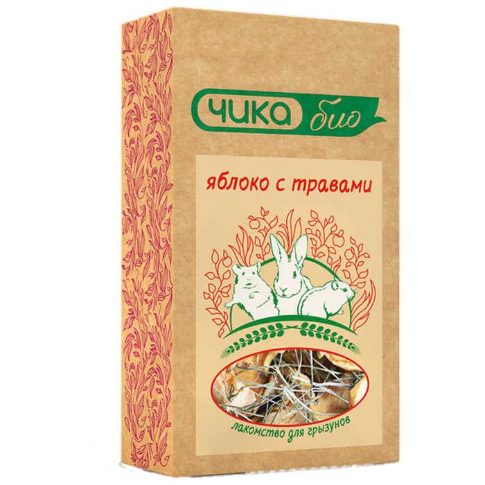 Это не только аппетитное натуральное лакомство для грызунов, но и источник природных витаминов, питательных веществ и микроэлементов. Сушёные яблоки содержат калий, фосфор, кальций, магний, натрий, много железа, витамины (Е, группы В, каротин), а так же органические кислоты и пектиновые вещества. Луговые травы содержат клетчатку, необходимую для нормальной работы пищеварительной системы травоядных грызунов.