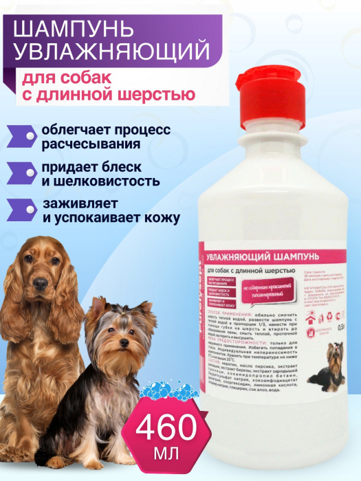 Шампунь увлажняющий для собак с длинной шерстью "ЧИСТОСЕПТ" - это гипоаллергенный шампунь для профессионального применения, который облегчает процесс расчесывания, придает блеск и шелковистость, заживляет и успокаивает кожу.