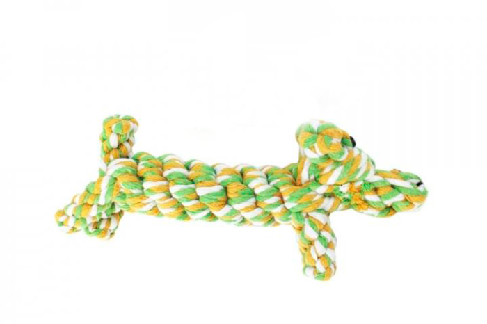 Милая и забавная игрушка в форме собачки понравится как питомцу, так и его хозяину. Она изготовлена из прочного хлопкового каната, искусно сплетённого в симпатичную фигурку пса.