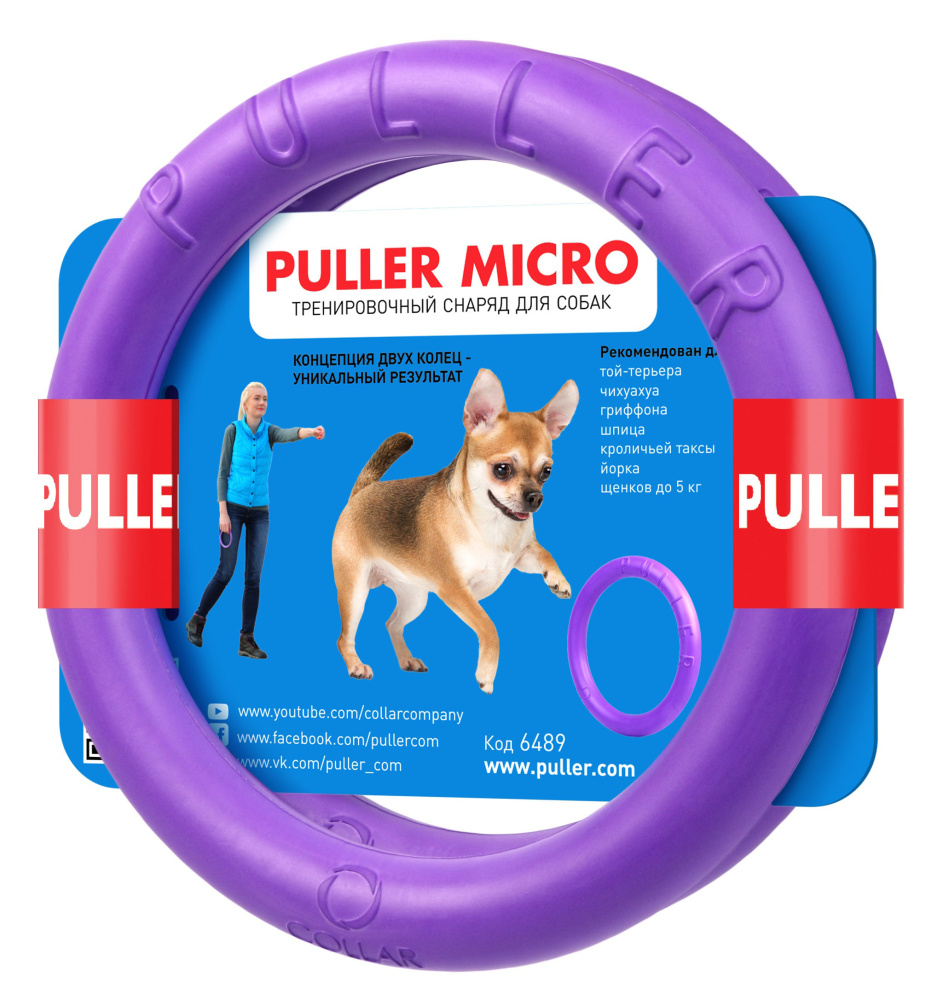 PULLER Micro специально разработан для мелких пород собак. Для упражнений рекомендуется использовать два кольца. Хорошо подойдет для той-терьеров, чихуахуа, гриффонов, шпицев, кроличьих такс, йорков, щенков до 5 кг и др.