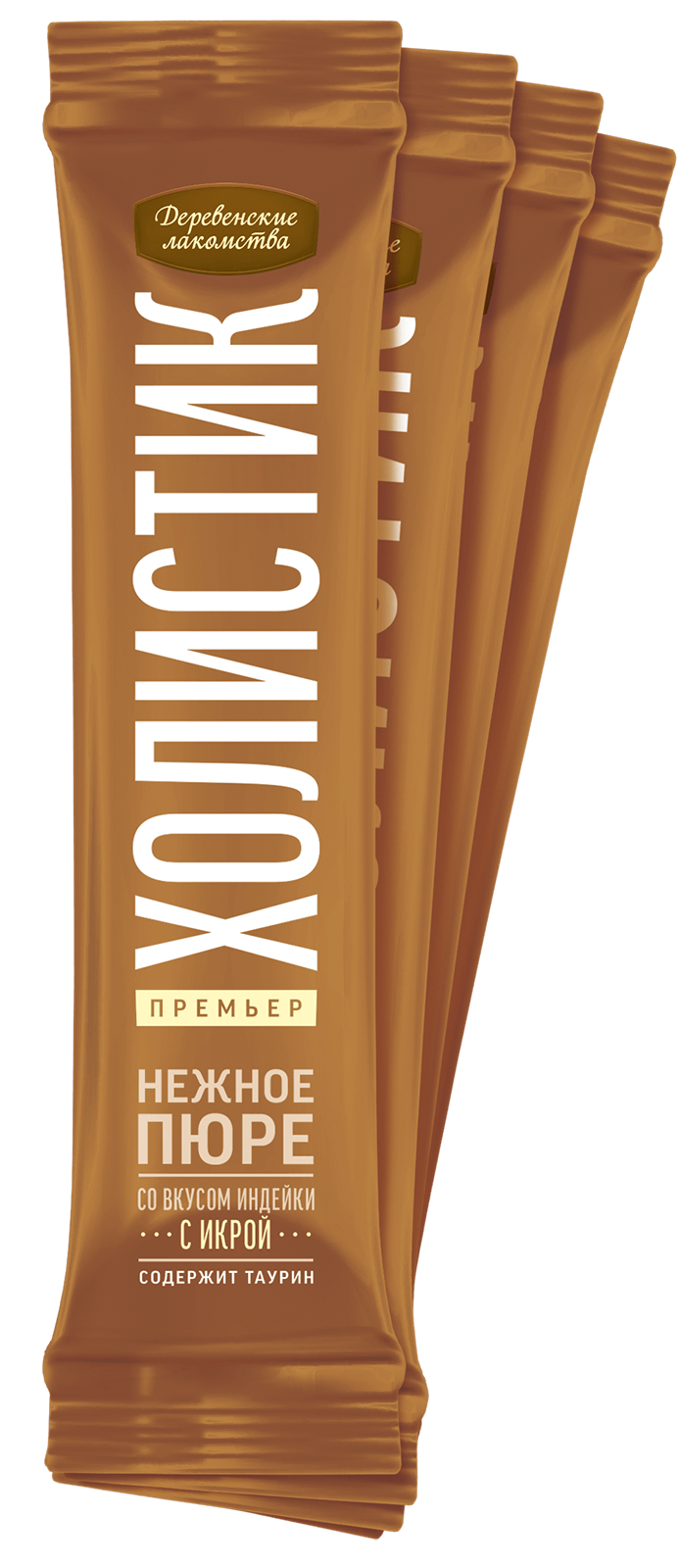 Попробуйте наши новые изысканные десерты «Холистик Премьер». Нежнейшее пюре c отборным мясом индейки, с добавлением настоящего деликатеса — икры летучей рыбы, порадует вашу кошку ярким, насыщенным вкусом. Удобная упаковка позволит вам проводить вместе незабываемые минуты, угощая вашего любимца прямо из пакетика.
