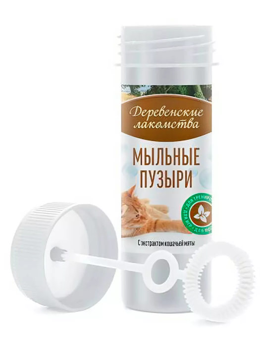 Деревенские лакомства для кошек, мыльные пузыри с экстрактом кошачьей мяты, 45 мл. Деревенские лакомства для кошек, мыльные пузыри с экстрактом кошачьей мяты, 45 мл. Мыльный раствор с экстрактом из натуральной кошачьей мяты прекрасное и безопасное развлечение для кошки и ее хозяина! Кошки любят играть с мыльными пузырями, мы же решили сделать эту игру еще более увлекательной. Попробуйте, ваша кошка будет благодарна. Объём: 45 мл