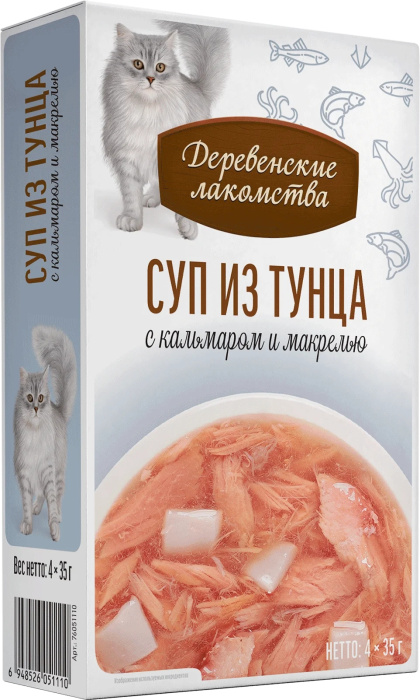Суп из тунца с кальмаром и макрелью — это не только вкусное, но и полезное дополнение к рациону вашей кошки.