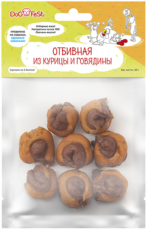 Мясо курицы: 46.4%, говядина: 46.4%, крахмал: 4%, пищевой глицерин: 3%, соль: 0.2%